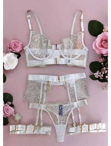 Setul contine: sutien, chilot, portjartiera si manusi.