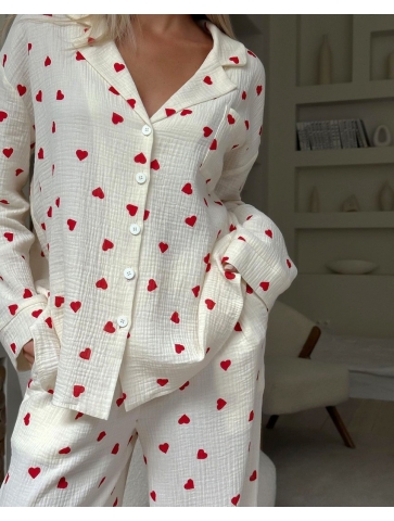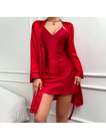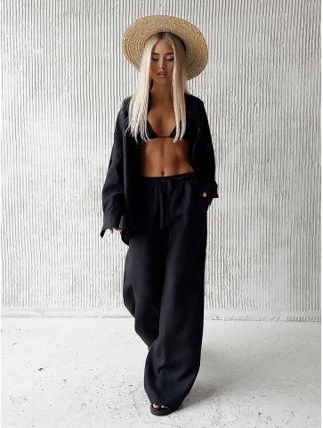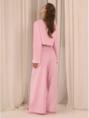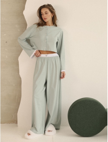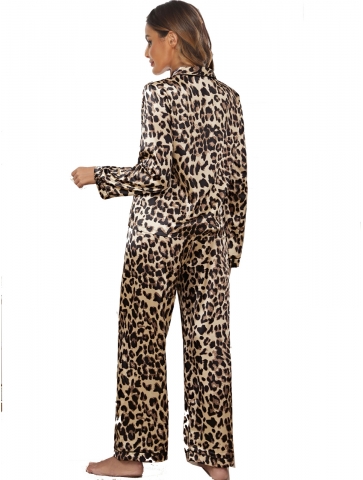 Setul contine bluza cu nasturi si pantaloni din saten.