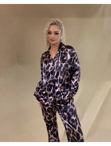 Setul contine bluza cu nasturi si pantaloni din saten.