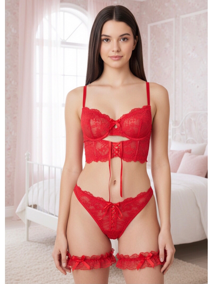 Setul contine sutien, chilot si jartiere, piesele fiind reglabile.
