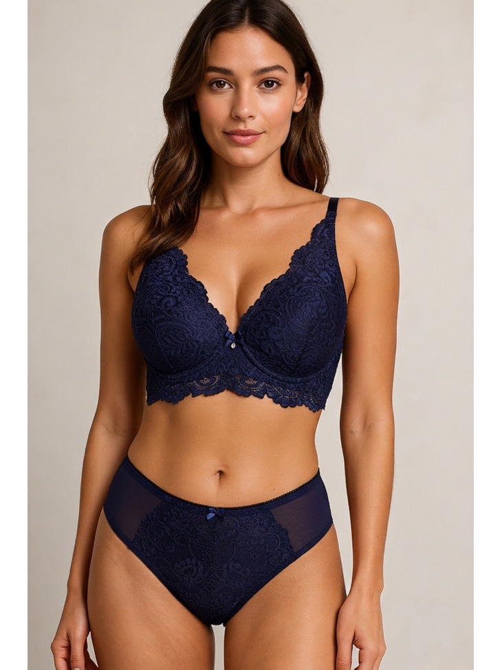 Set lingerie format din sutien cu burete subtire si chilot brazilian. Sutienul ofera sustinere si un aspect natural, fiind potrivit pentru purtare zilnica. Chilotul brazilian completeaza setul cu o croiala feminina si confortabila.