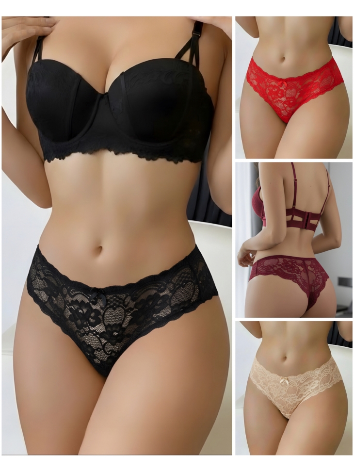 Chilotul este din dantela eleganta cu bretele relgabile. Elasticul este moale ca sa nu lase urme inestetice pe piele.