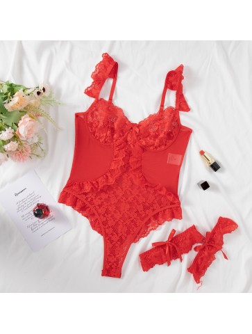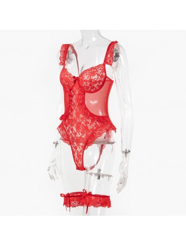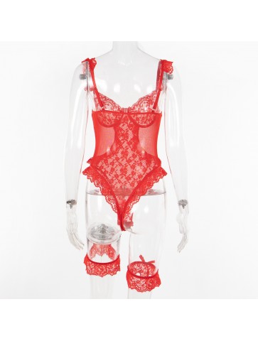 Setul contine: sutien, chilot, portjartiera si doua jartiere cu funda.
