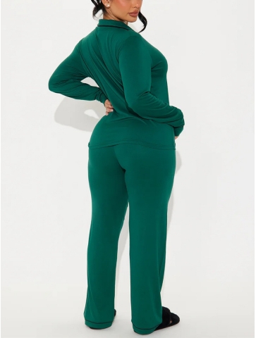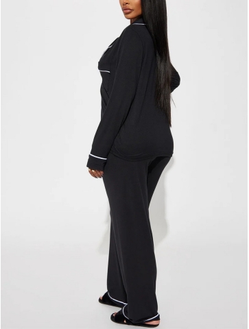 Setul contine bluza cu nasturi si pantaloni.